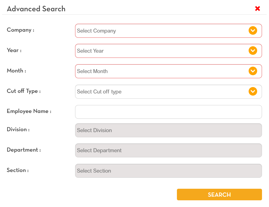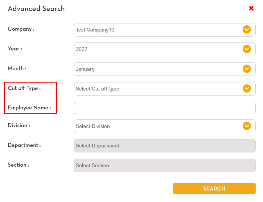 You can also search a specific employee and cut-off type. Enter the needed data then click Search.