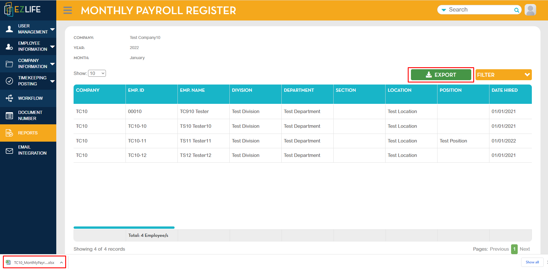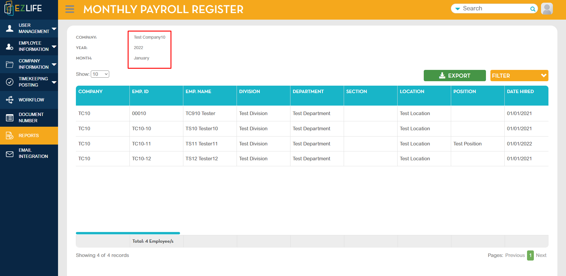 To check the monthly payroll register report, click the profile icon in the upper-right corner of the page, go to Administration - Reports - Payroll Reports - Monthly Payroll Register