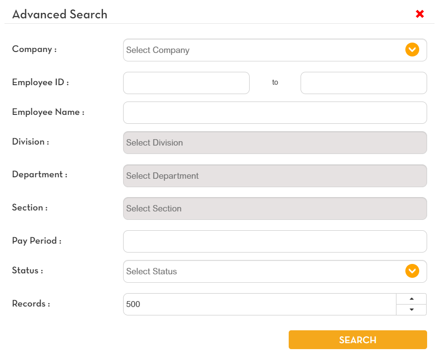 You can also search a specific employee, pay period and status. Enter the needed data then click Search.