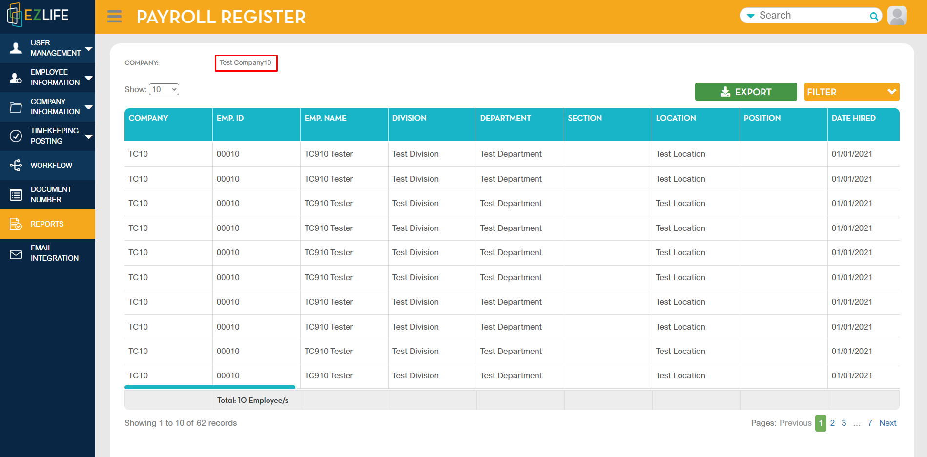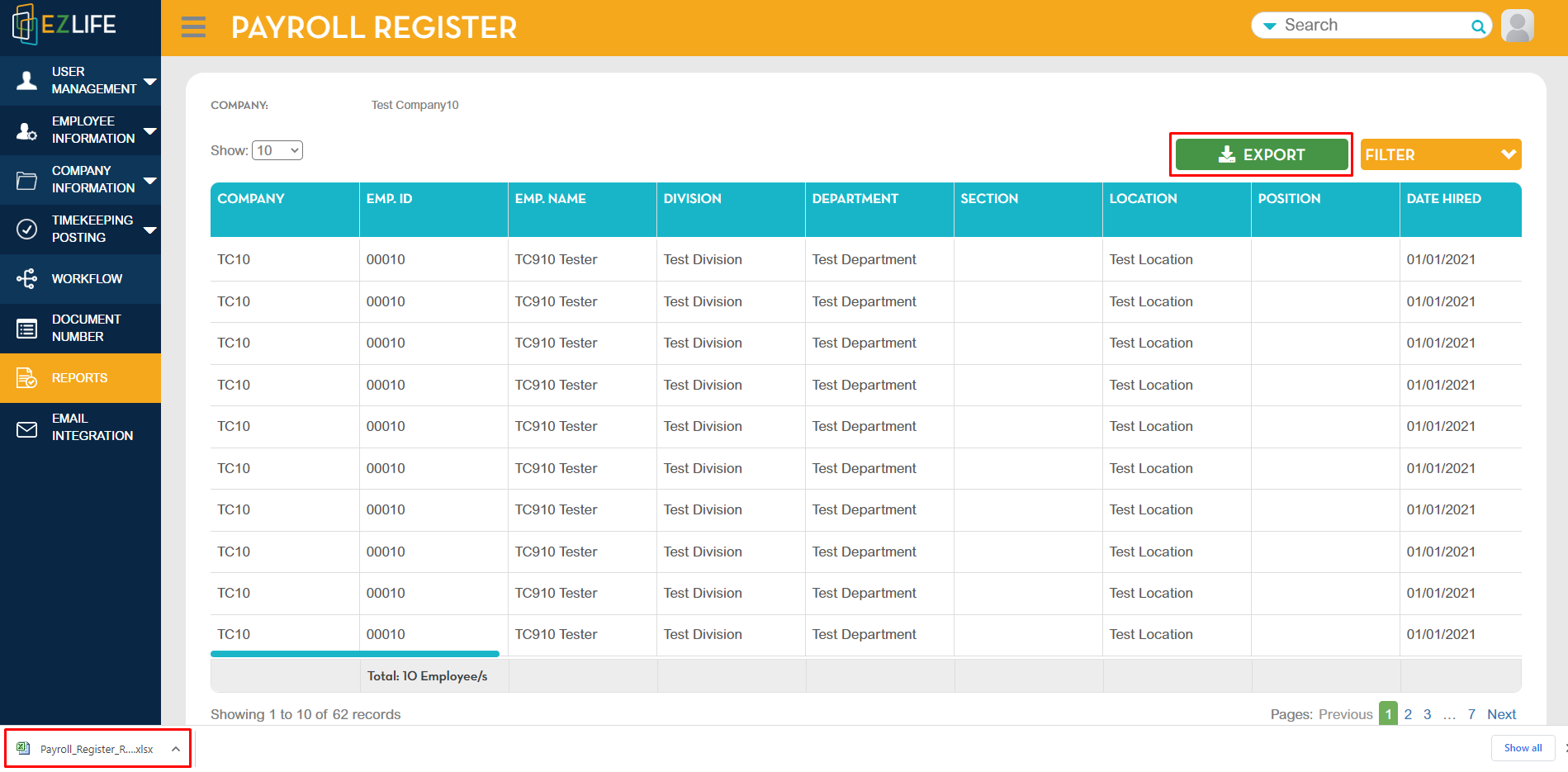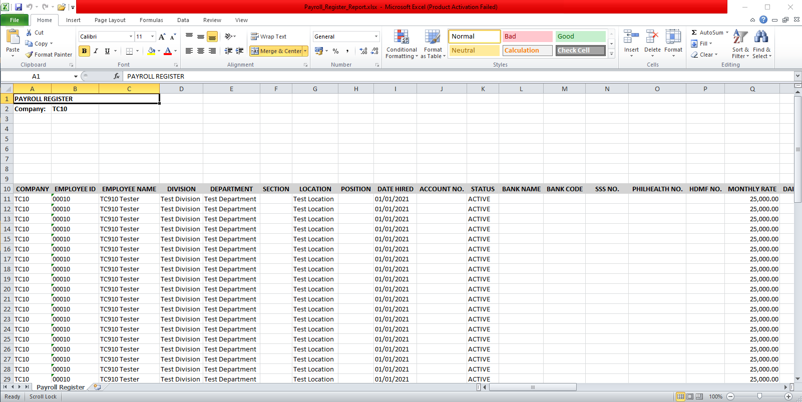 Payroll Register of the selected company will show.