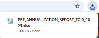An Excel file containing the Pre-Annualization Report will automatically download.