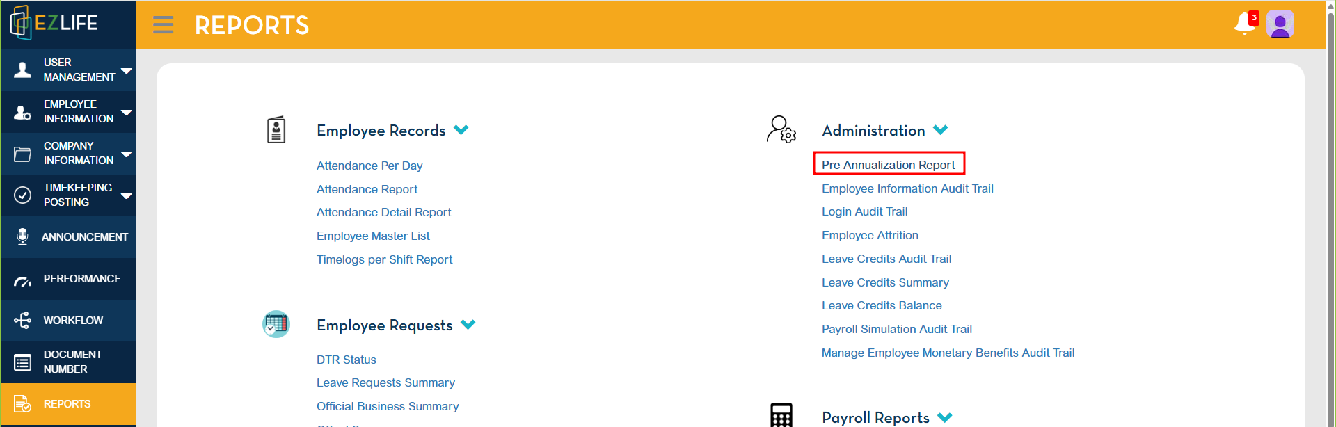 Under Administration, locate and click Pre-Annualization Report.