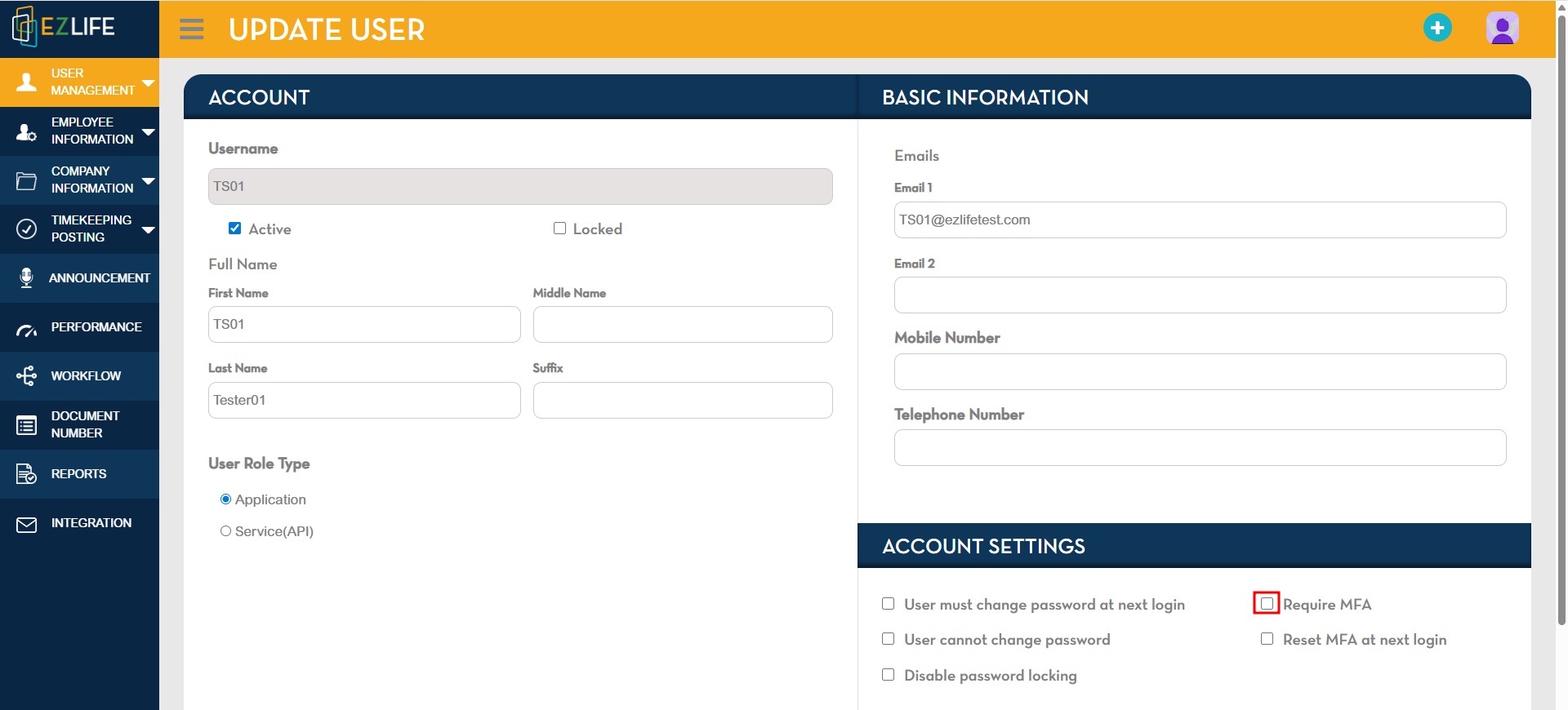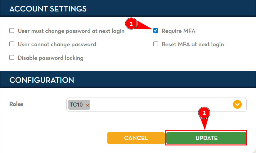 4. In the Account Settings tab, tick the checkbox for Require MFA.