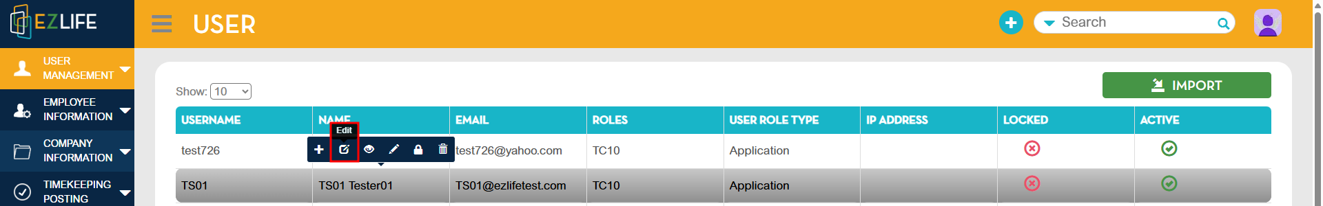 3. Locate the employee you want to require MFA for and click the Edit (✎) icon beside their name.