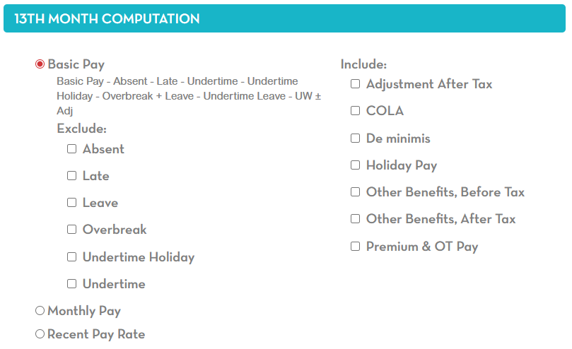 Basic Pay value follows the company’s 13th month computation setup