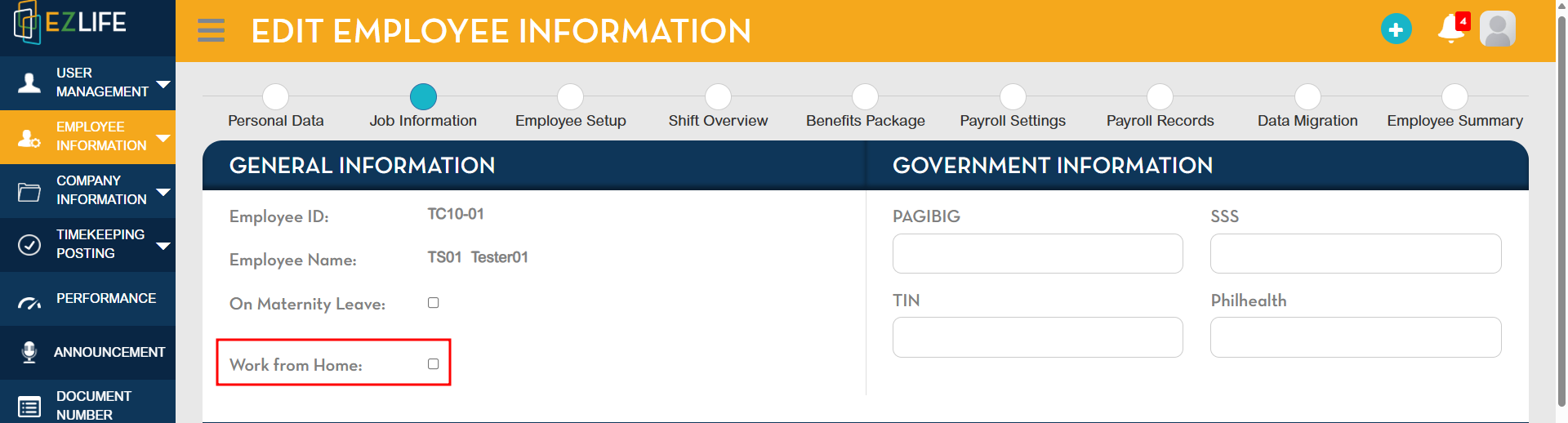 A new field, “Work From Home”, has been added as a checkbox within the employee profile.