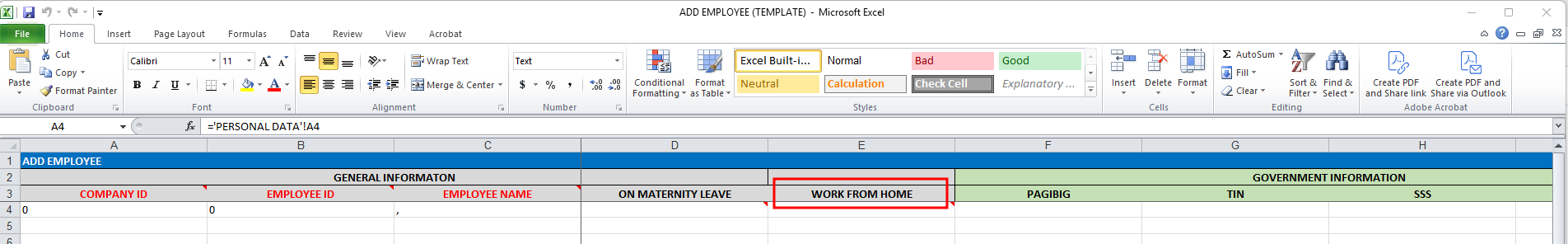- A new column for Work From Home is included in the employee data template
