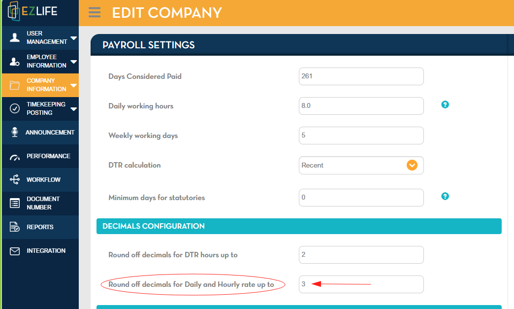 - Example: If the decimals are set to 3, the system will process amounts up to three decimal places.